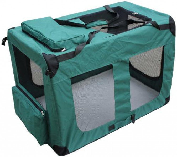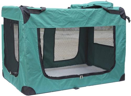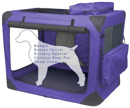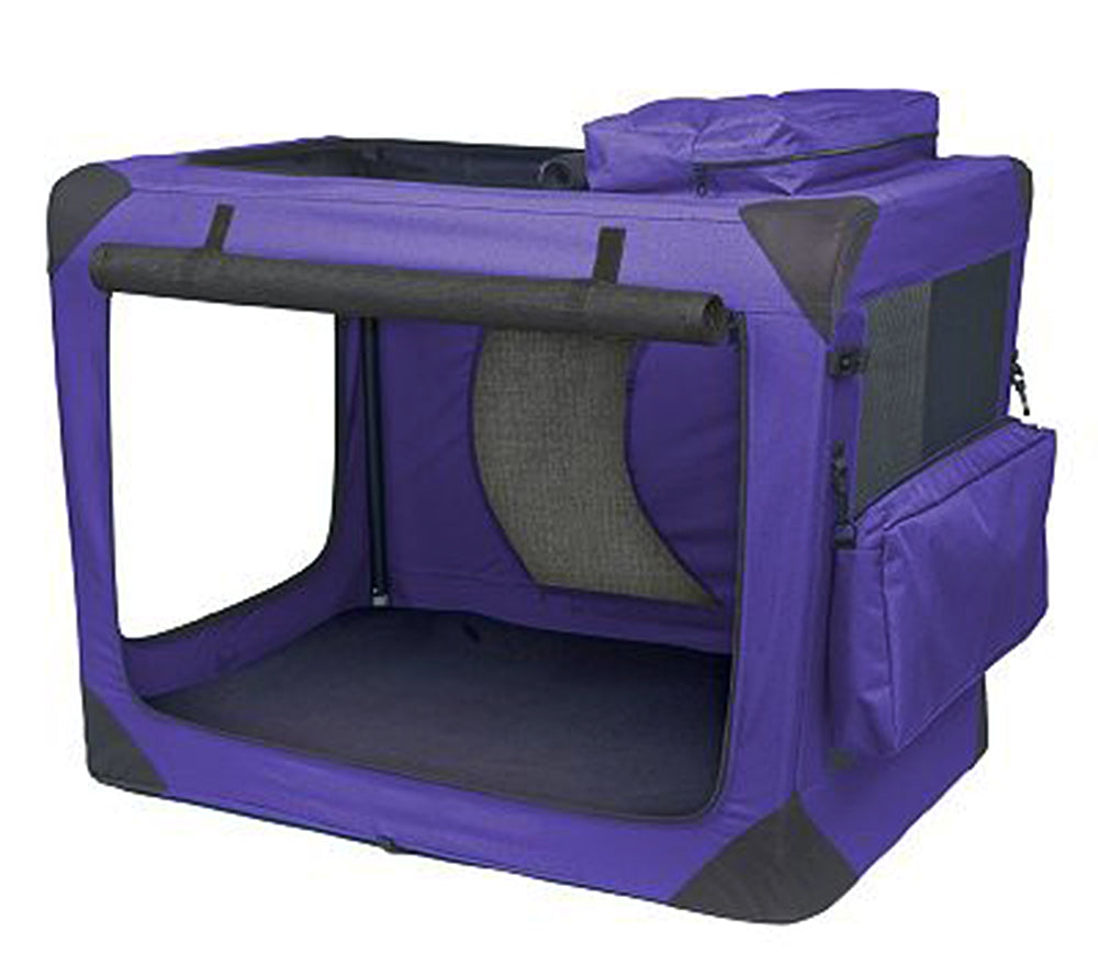 This Home 'N Go soft crate by Valentina Valentti was designed to look great in your home and is also portable so that you can take your pet along with you anywhere you go. The frame is made of strong, durable steel and the shell is made of water resistant 600 denier nylon with 3 vinyl coated mesh doors for easy access and convenience. This soft crate ships folded flat, yet fully assembled, and opens easily in about 15 seconds. (NO TOOLS OR ASSEMBLY REQUIRED). Comes with free reversible fleece pad. Also there is a carry-all case where you can stash your pets needs like treats, water, toys and grooming kit. Great care was put into designing this crate for safety. There are no pinch points that might injure you or your pet, there are no hanging hazards that could harm your pet, and there are no choking hazards that could be swallowed. Your pet can rest in comfort during the trip.