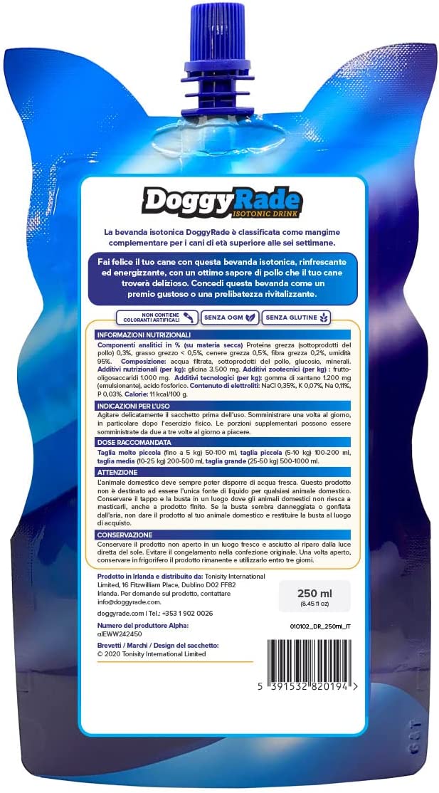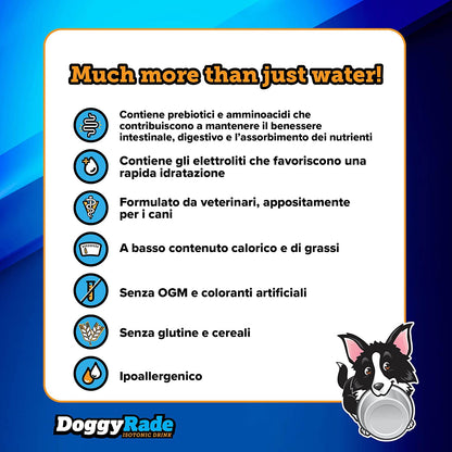 DoggyRade is an isotonic drink that encourages fast hydration in dogs.