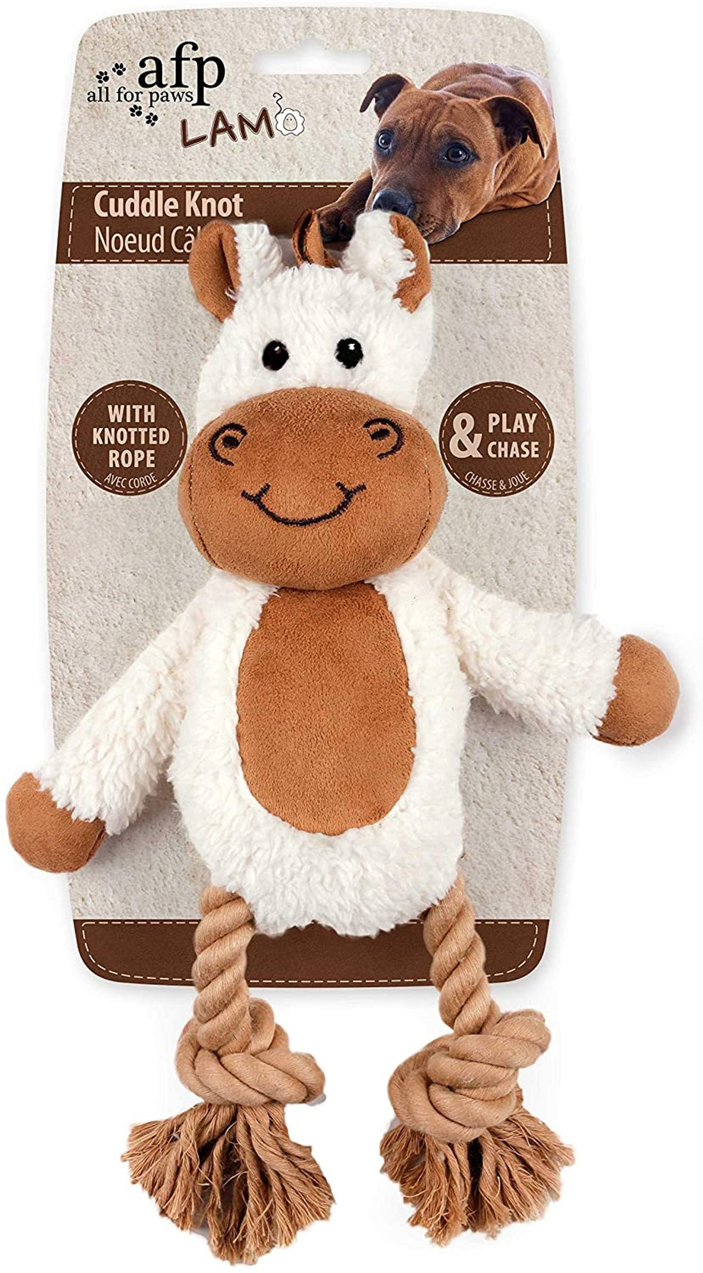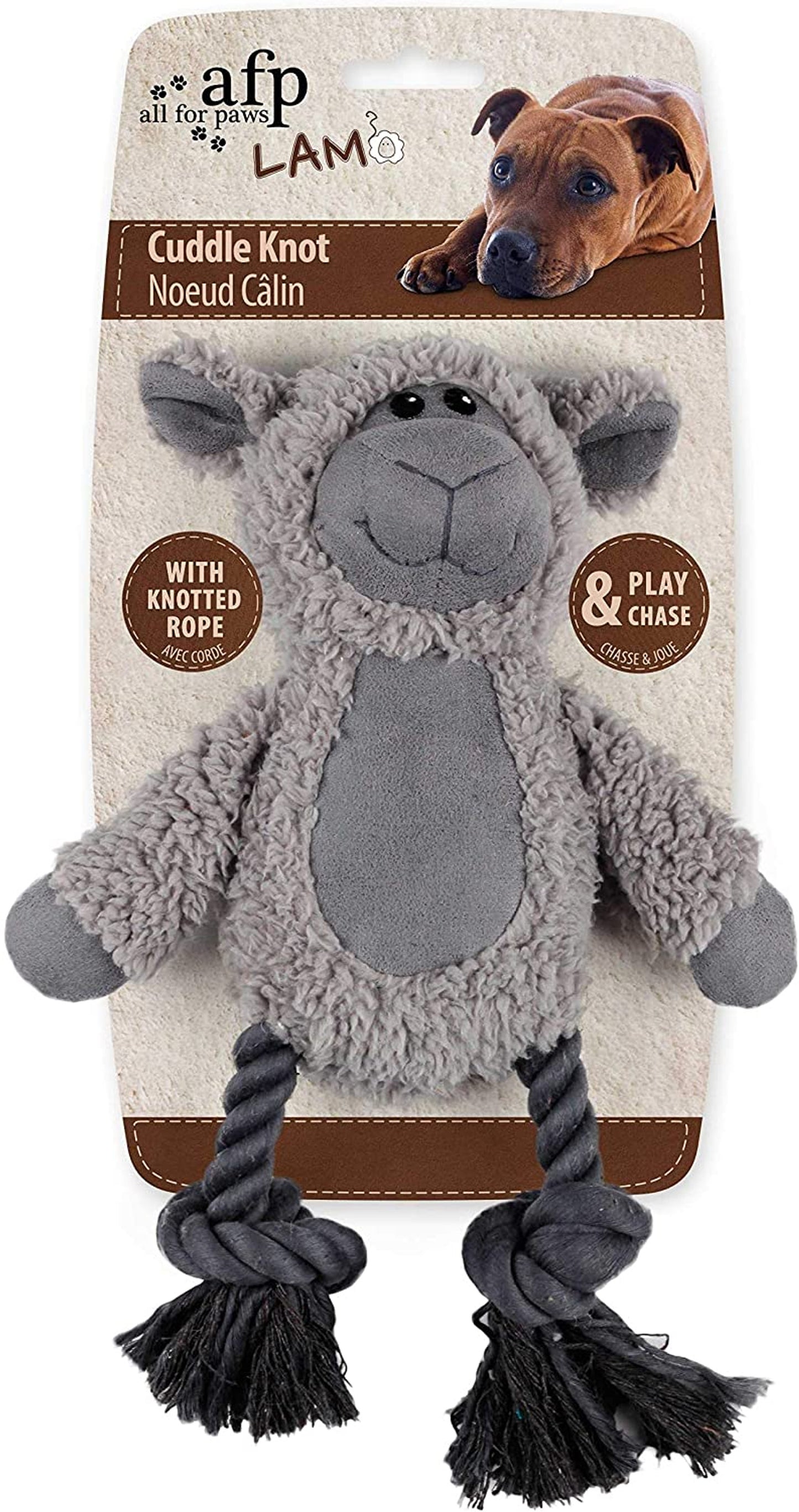 All For Paws Lambswool Cuddle Knotted Rope is made of soft faux suede, lambs plush and ropes. The fabric provides a fantastic tactile impression. Inner squeaker attracts the dog's attention and entices it to play and the knotted rope is good for dogs teeth. Let your dog enjoy the fun of playing with a knotted rope toy. Let the dog enjoy the fun of playing with this cuddle knotted rope toy. It is made of soft faux suede, lambsplush and ropes. The fabric provides fantastic tactile impression. Inner squeaker attracts dog's attention and entices it to play, and the knotted rope is good for dental health.