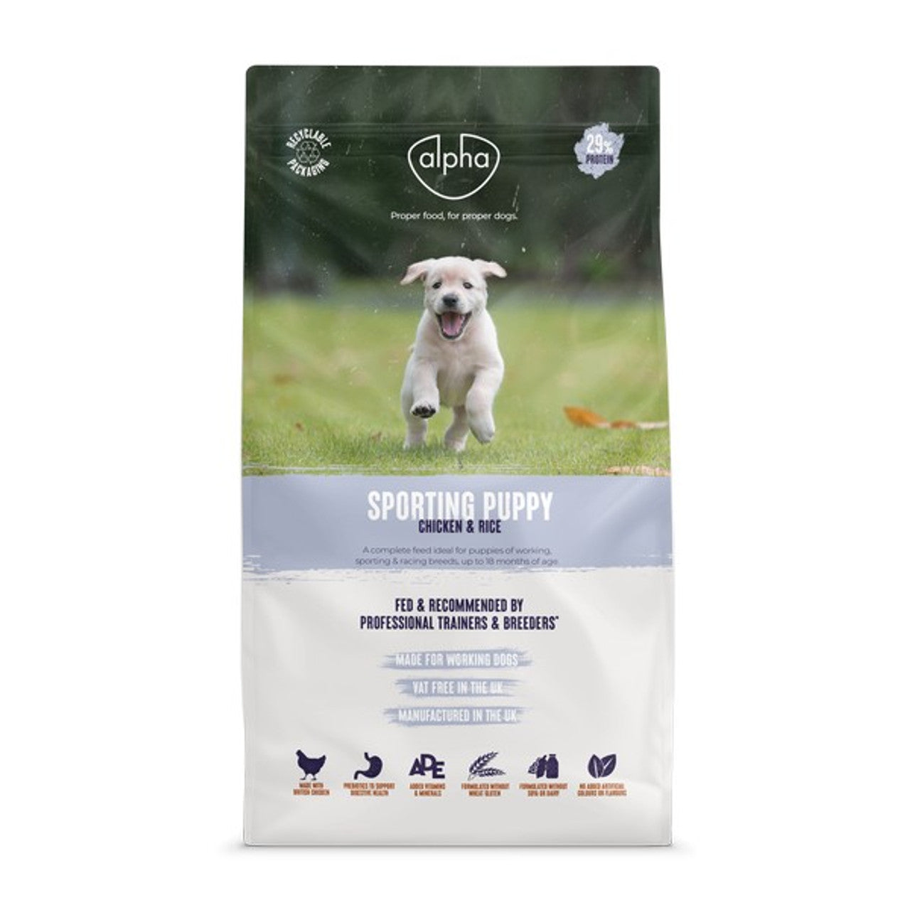 Alpha Sporting Puppy is a complete and balanced diet formulated to give young working and active puppies the best start in life. Made with high-quality ingredients, it provides essential protein, energy, vitamins, and minerals to support healthy growth, strong muscles, and bone development. Gentle on young digestive systems, it helps build the foundation for a healthy, active future.