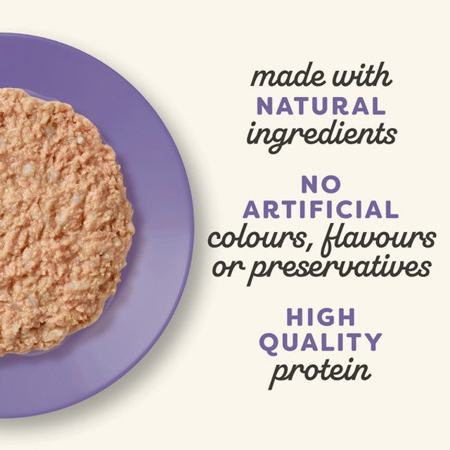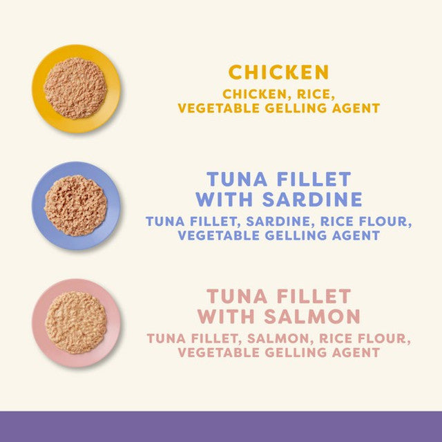 Variety Pack: Six tins with diverse recipes (e.g., chicken, tuna, salmon) to tempt picky eaters and prevent mealtime boredom.