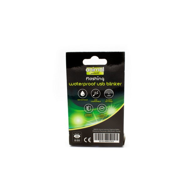 Animal Instincts Flashing Safety USB Blinker Waterproof Rectangle Orange High Visibility Dog Accessory