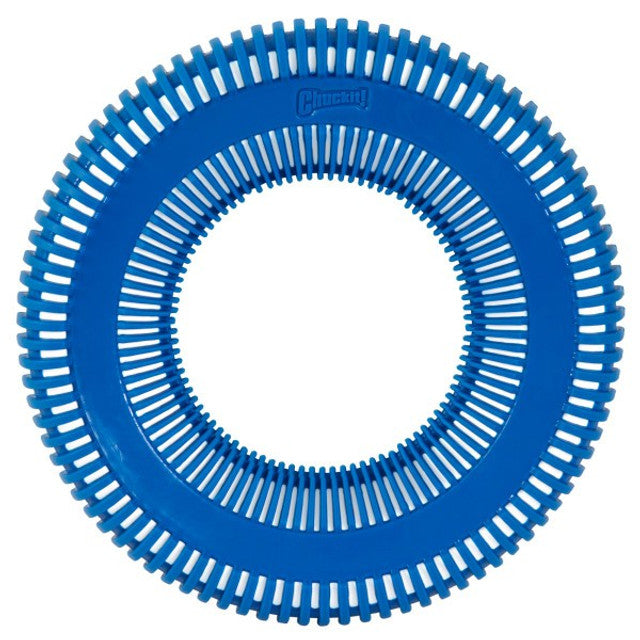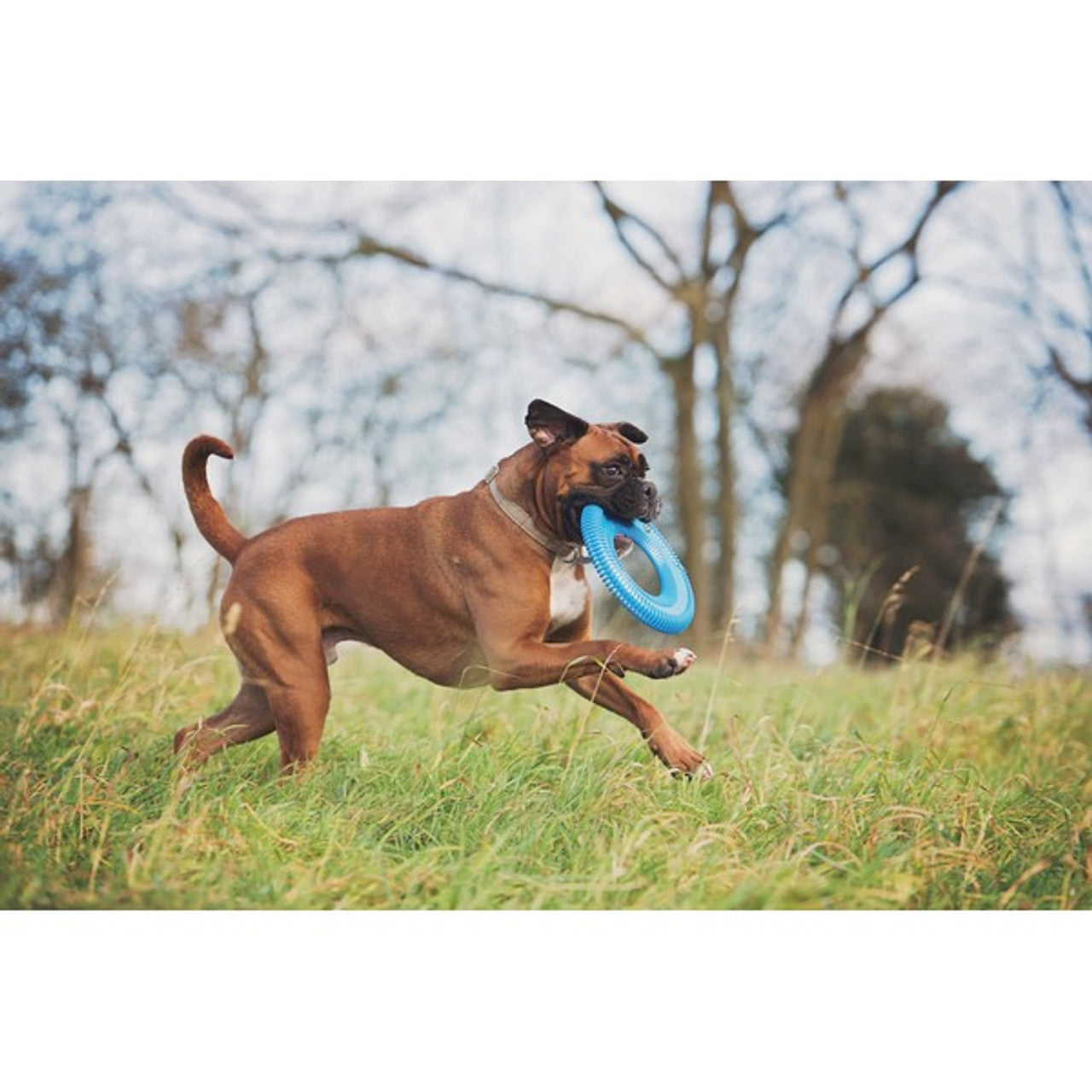 A durable flying disc designed for outdoor fetch, crafted from tough, flexible rubber to withstand chewing and rough play. Its aerodynamic shape ensures smooth glides, while the bright color enhances visibility in grass or water. Built to float and endure rugged terrain, it’s ideal for medium-sized dogs who love high-energy games like chasing and catching.