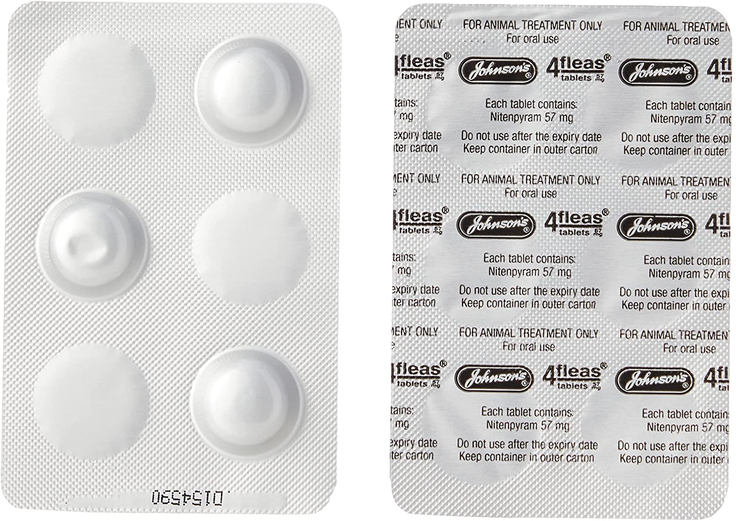 Each tablet contains 57mg Nitenpyram,the exact same ingredient as the veterinary product Capstar.