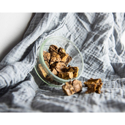 A natural, nutrient-dense dog treat made from 100% pure goat lung, air-dried to preserve protein and essential nutrients. These bite-sized cubes are ideal for dogs with sensitive stomachs or allergies, offering a lean, hypoallergenic protein source that supports muscle health and energy. Perfect for training rewards, meal toppers, or light chewing.