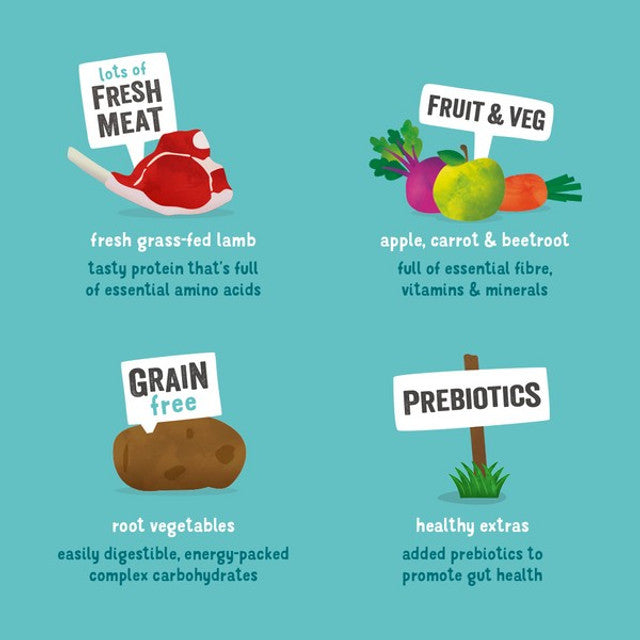 This 7kg bag of Edgard & Cooper Dry Food for Dogs features fresh grass-fed lamb as the primary ingredient, providing a high-quality, easily digestible protein source. The grain-free recipe is enriched with natural fruits, vegetables, and herbs, including apple, carrot, beetroot, and blueberry, offering a balanced and nutritious meal for adult dogs. It also contains prebiotics to support healthy digestion and is free from meat meals, grains, and artificial additives. The kibble is gently baked at a low temperature to preserve nutrients and flavor. Additionally, the packaging is fully recyclable and biodegradable, reflecting the brand's commitment to sustainability.