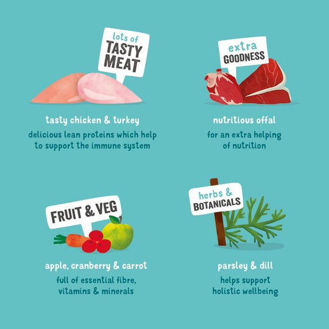 This grain-free wet food is crafted with a blend of chicken and turkey, providing a balanced and easily digestible protein source. The inclusion of lean meats offers essential amino acids to support muscle maintenance and overall health. Additionally, the recipe incorporates a mix of fruits and vegetables, such as apples, cranberries, and carrots, contributing essential vitamins and antioxidants to support overall health.