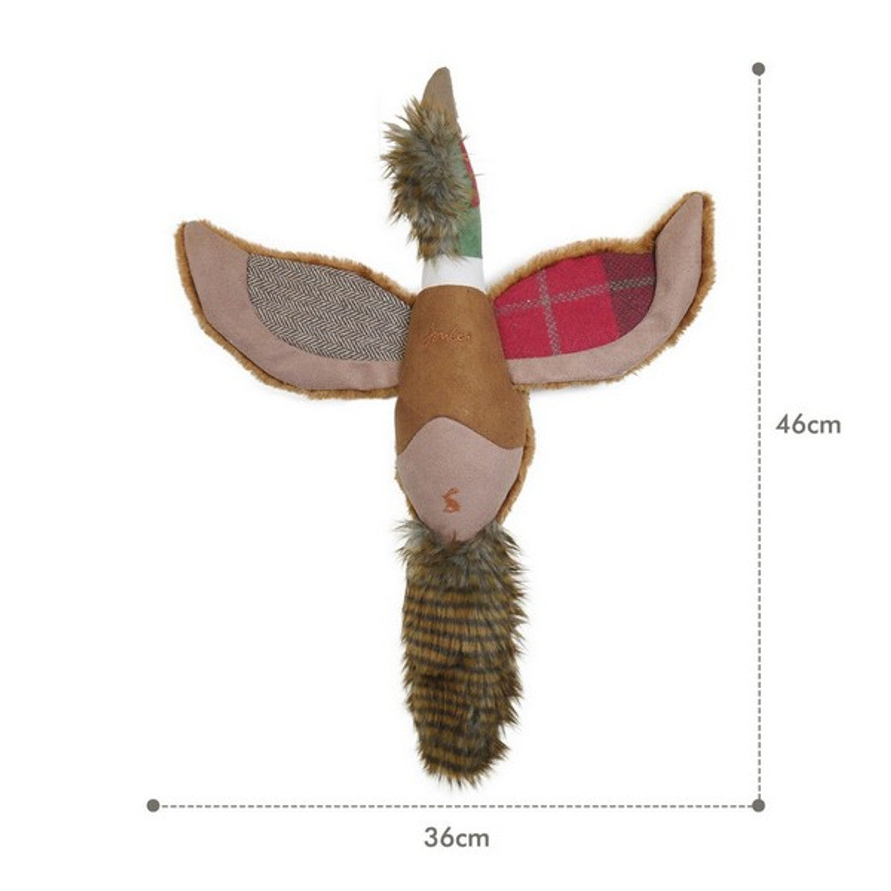 A stylish, pheasant-shaped plush toy designed to engage dogs with crinkle sounds and tactile play. Crafted from durable, non-toxic materials, it combines Joules' signature countryside aesthetic with reinforced stitching for light to moderate chewers. Ideal for interactive play or solo engagement, promoting mental stimulation and exercise.