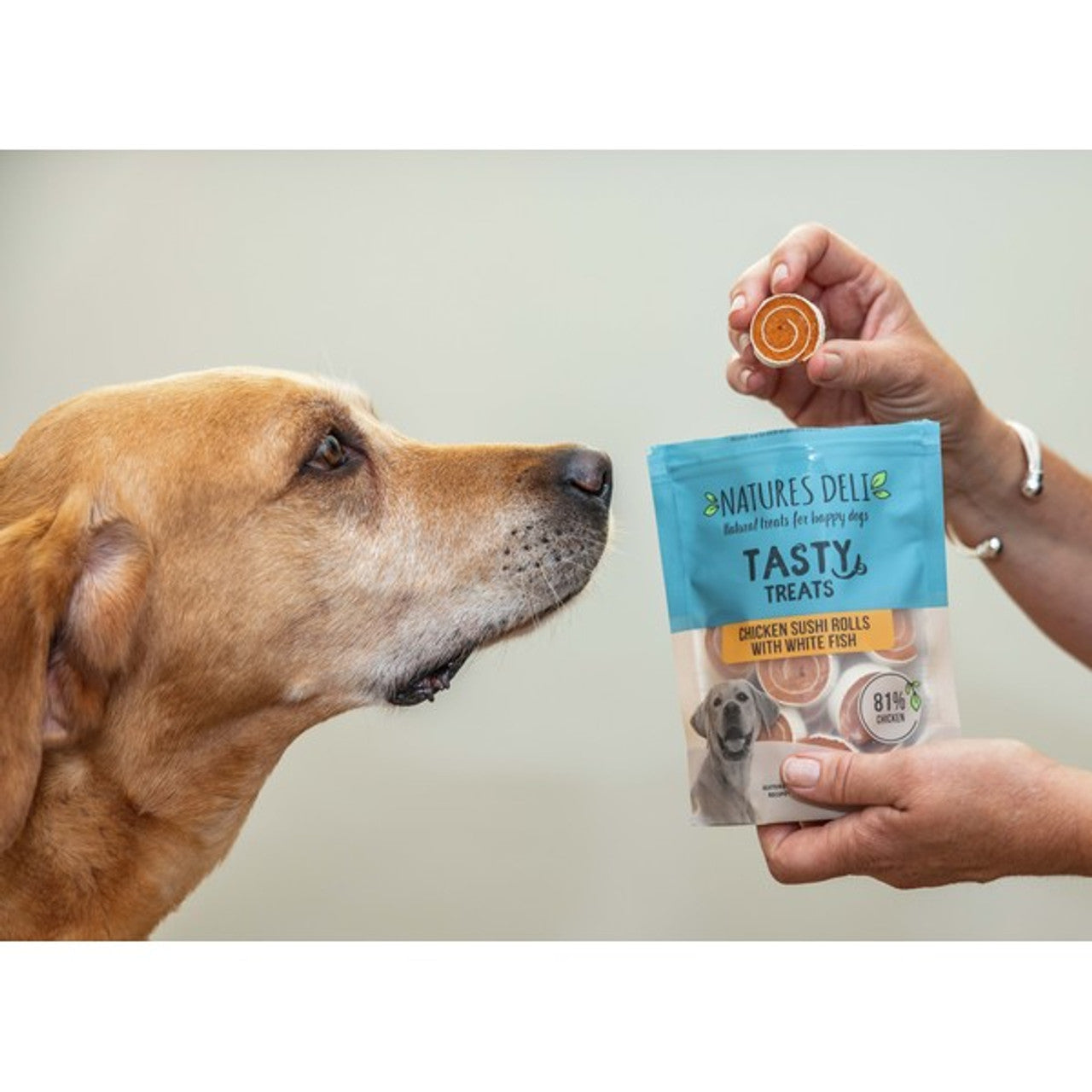 Natures Deli Chicken & Fish Sushi Rolls (100g) are delicious, protein-packed treats made with real chicken and fish, offering a unique and nutritious snack for your dog. Their soft, rolled texture makes them perfect for training, rewarding, or everyday treating.