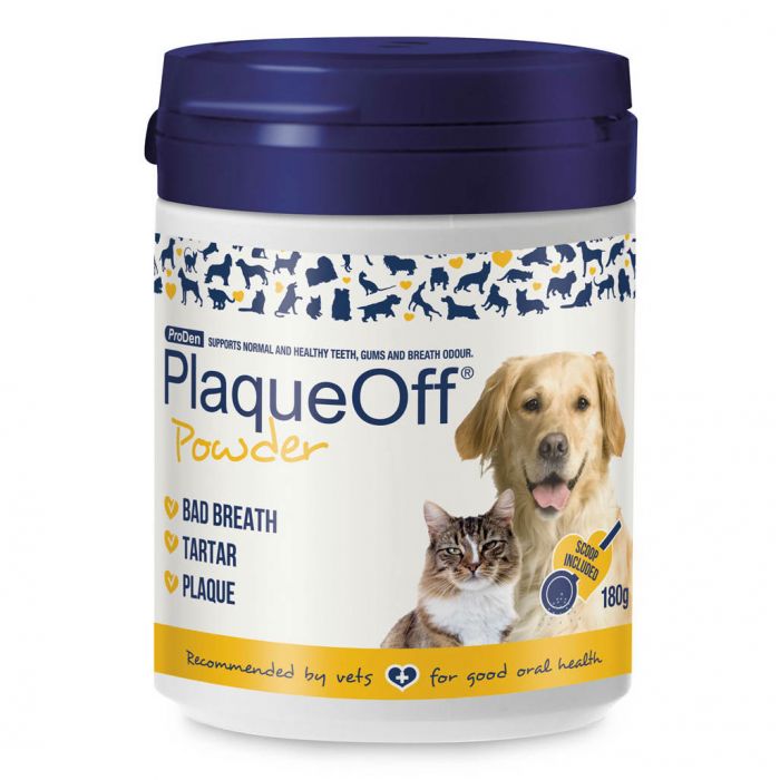 ProDen PlaqueOff® Powder is not a substitute for tooth brushing. It is a complement to brushing and the combination will help remove plaque and tartar, and keep your pet's mouth clean.