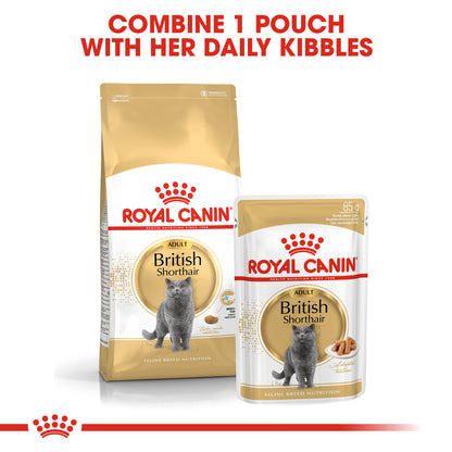 To cater to each cat’s individual preferences, ROYAL CANIN® British Shorthair Adult is also available as wet food in delicious gravy. If you’re considering mixed feeding, simply follow our feeding guidelines to ensure your cat gets an accurate amount of both wet and dry food for optimal benefit.