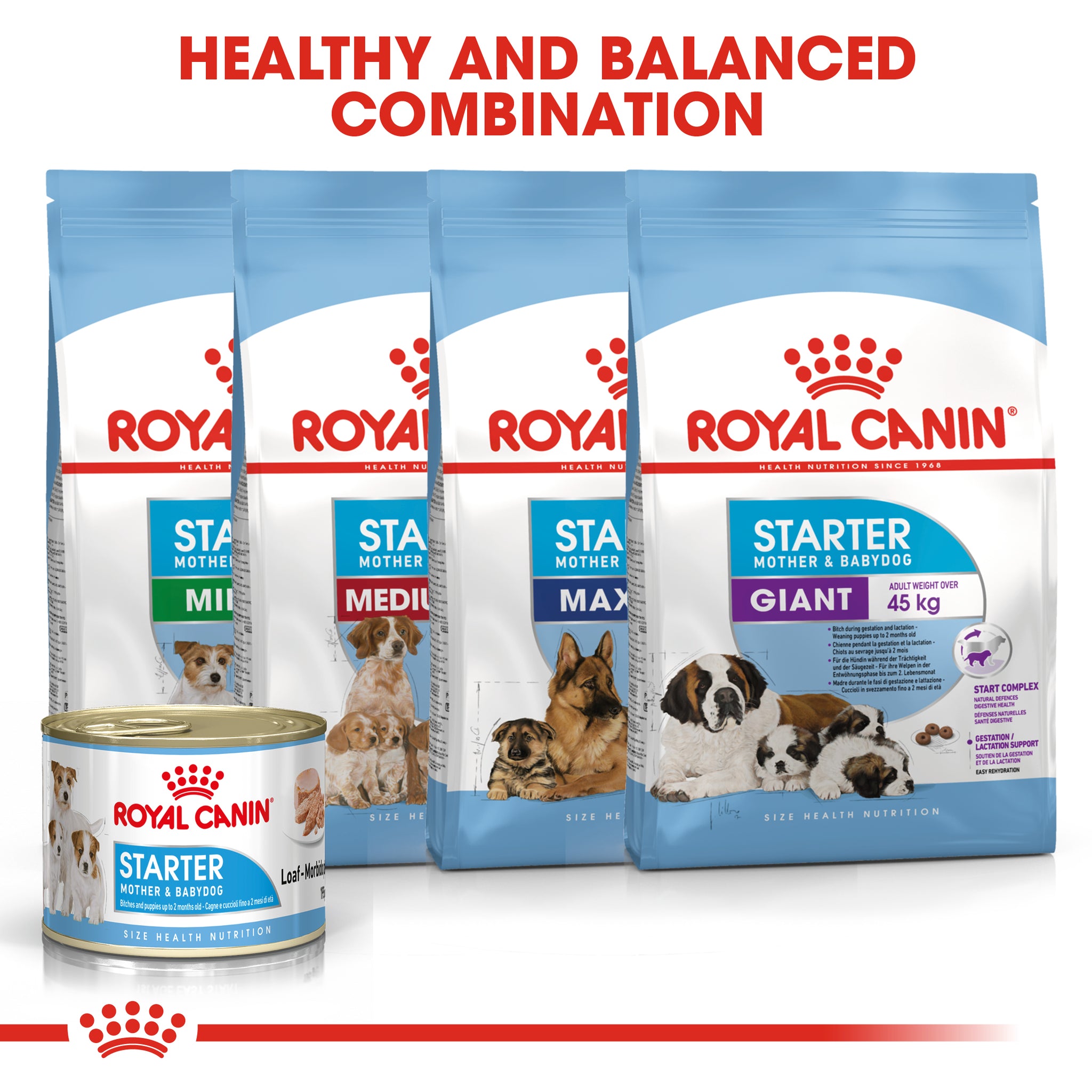 Royal Canin Starter Mousse is a complete dog feed for the bitch (gestation or lactation) and her puppies up to 2 months old.