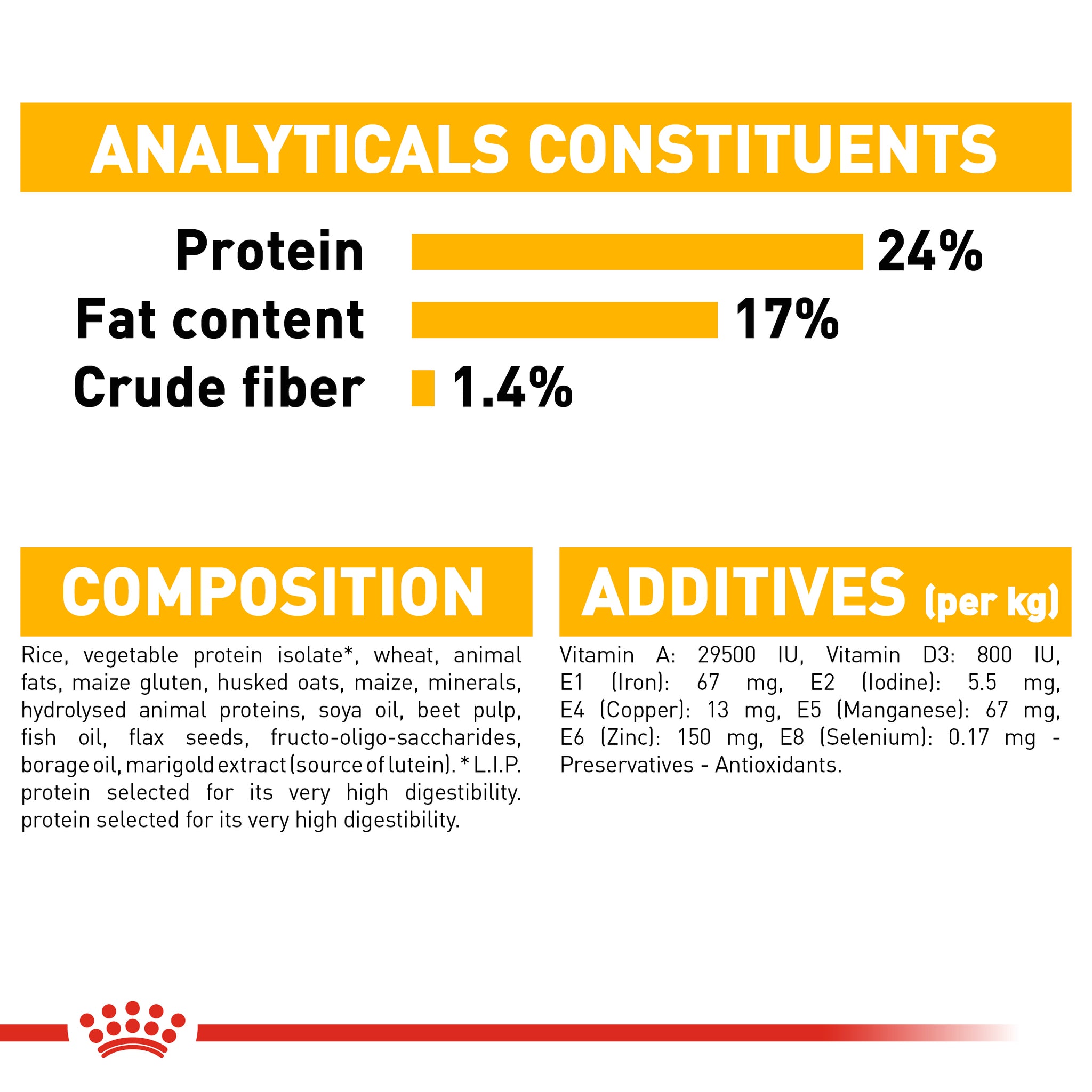 Itching and irritation is unpleasant for your dog and affects their comfort and wellbeing. Sensitive, itchy skin means a lot of scratching, which can lead to the skin becoming damaged. ROYAL CANIN® Dermacomfort Medium’s reduced allergen formula helps to support skin health by utilising a specifically selected range of very high quality proteins.