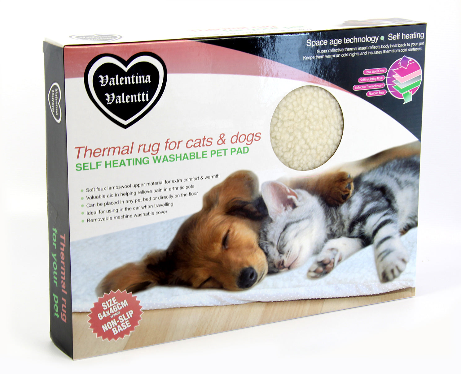 Valentina Valentti Self Heating Pet Pads are a great innovation. They use space age technology, super reflective thermal insert that reflects your pet's body heat back towards them. Made of super soft faux lambswool upper material that is easily removed for washing, bottom part uses a non-slip base for stability. The pads fit all popular sizes of dog crate or can be used on its own on the floor. Easy wash and care.