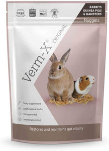 Verm-X Nuggets for Rabbits, Guinea Pigs, Hamsters and all Rodents have been carefully formulated and produced to give domestically-kept lagomorphs, rodents and mustelidae not only the highly palatable Verm-X intestinal hygiene control formulation but also an overall high fibre healthy treat.