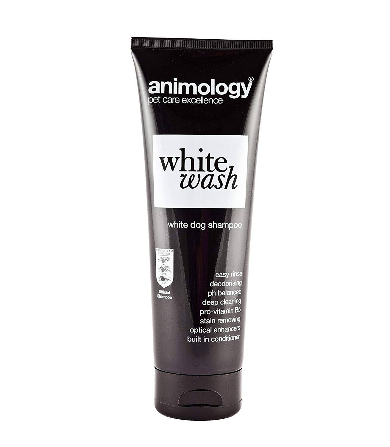 This shampoo has Animology 'EASY RINSE' technology that keeps washing time to a minimum and built in Conditioners and Pro-Vitamin B5 that help improve the health, strength and condition of the coat. Animology White Wash is infused with our 'Signature' scent that ensures all Animology clean dogs look, feel and smell simply wonderful.