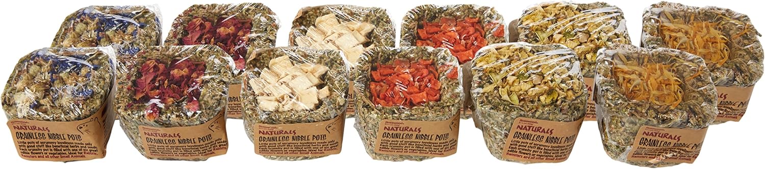 Rosewood Grainless Nibble Pots are nutritious, grain-free treats for small animals. Made with wholesome, natural ingredients, these nibble pots support healthy snacking and natural chewing behaviour. Ideal for rabbits, guinea pigs, hamsters, and other small pets, they come in convenient single-serving portions, supplied as a case of 12.