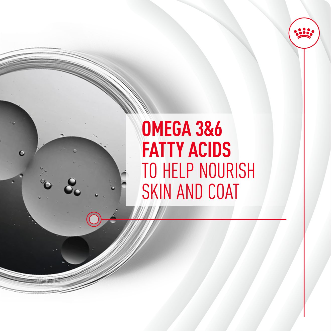 Suitable for adult dogs, ROYAL CANIN Skin Coat Adult Chews are formulated by veterinarians and approved by dogs. These supplements feature a science-driven blend of ingredients backed by over 50 years of research and observation in canine nutrition.ROYAL CANIN Skin Coat Adult Dog Chew supplements are designed to help maintain healthy skin and a glossy coat. These chews contain Omega-3 and Omega-6 fatty acids to nourish the skin and coat, along with zinc and GLA to support the skins barrier function. Additionally, a blend of vitamins is included to promote healthy skin cell turnover.Dont just take our word for it. When tested, 86% of owners reported satisfaction with ROYAL CANIN Skin Coat Adult Chews after just 2 months of use.*Our chewable supplements are designed to complement any diet within the ROYAL CANIN range designed for healthy pets.Be sure to follow the on-pack feeding guidelines and give your dog no more than the recommended number of pieces per day.*Royal Canin internal study in 105 healthy adult dogs with mild and punctual skin and coat sensitivities.
