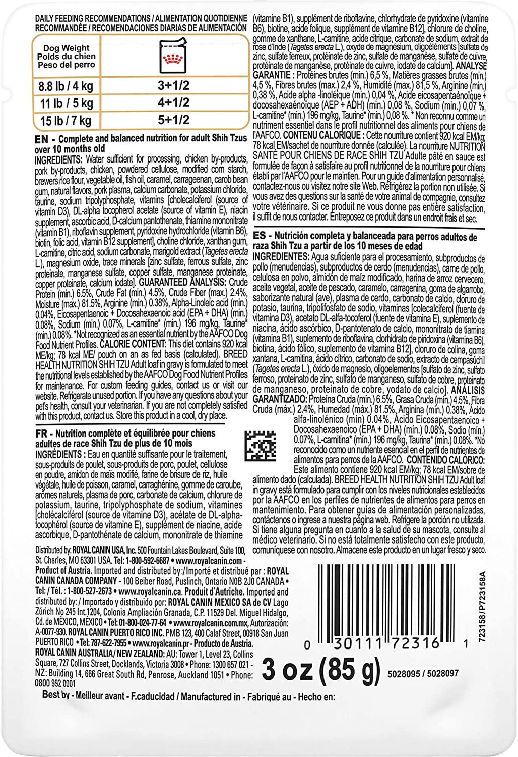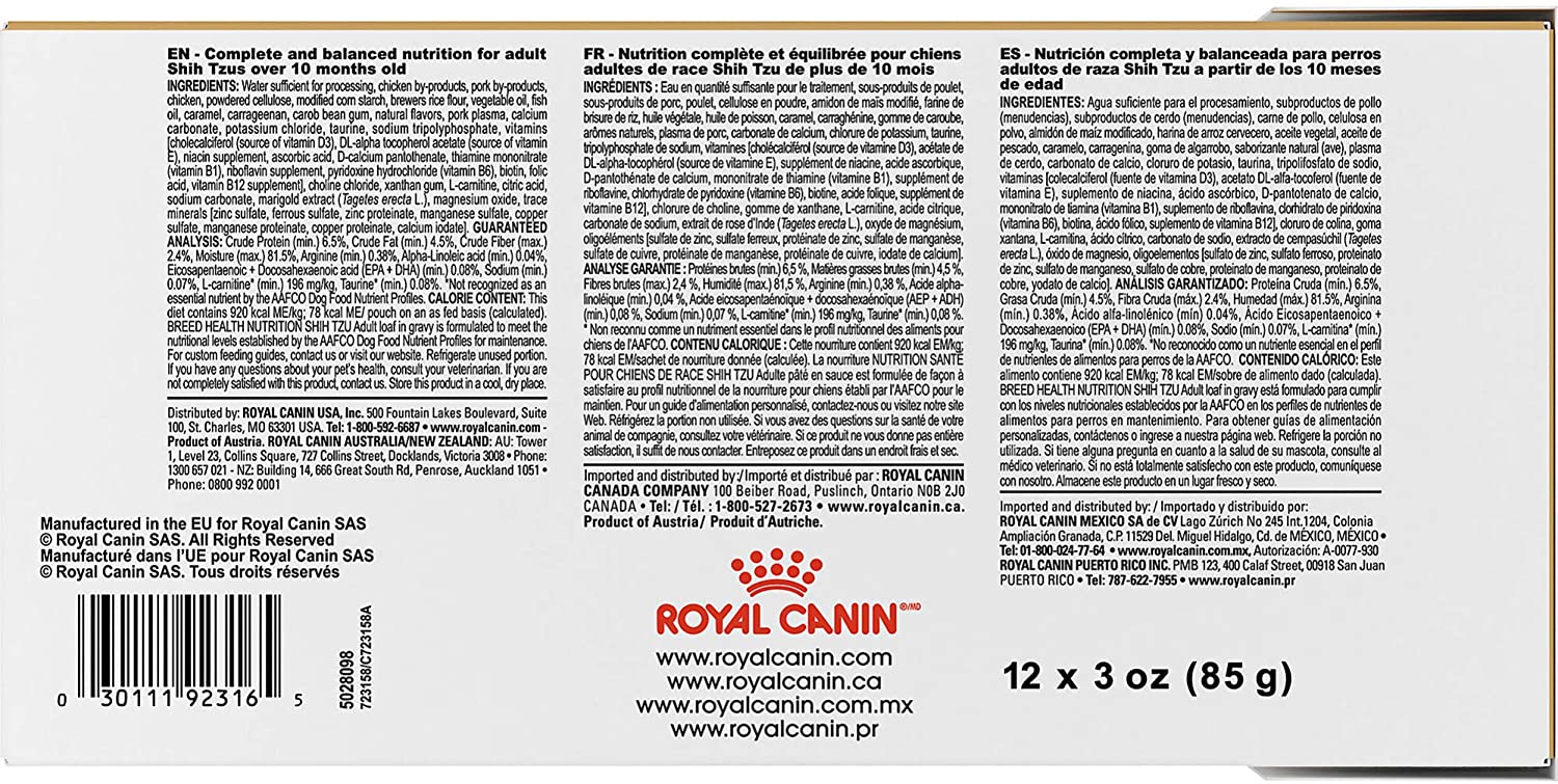 - Royal Canin Adult Shih Tzu wet dog food is designed to meet the nutritional needs of purebred Shih Tzus 10 months and older