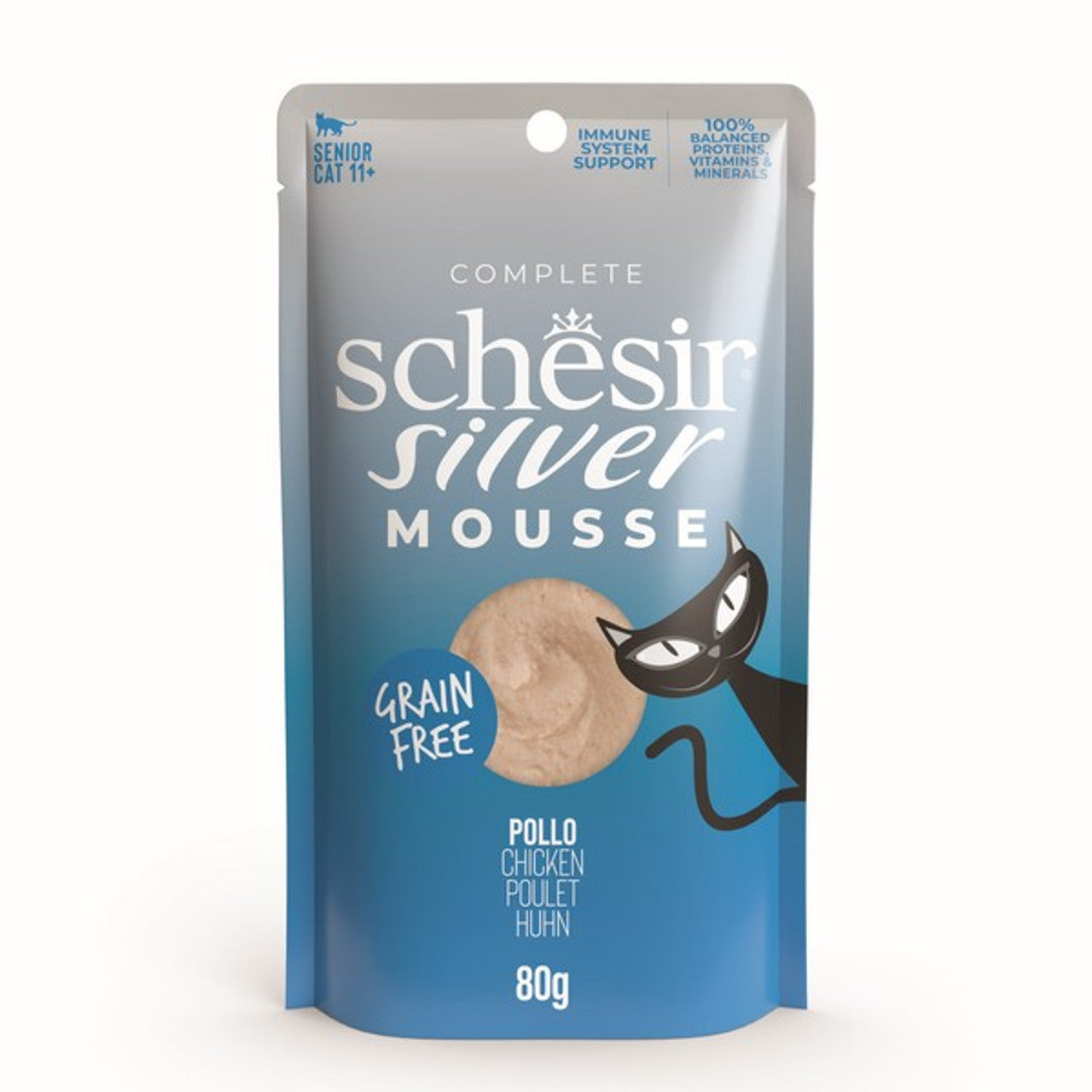 Schesir Silver Mousse Older Cat Chicken (80g) is a soft, creamy mousse specially developed for senior cats aged 7 and up. Made with high-quality chicken, this complete and balanced recipe supports aging needs while offering a gentle texture that's easy to eat and digest.