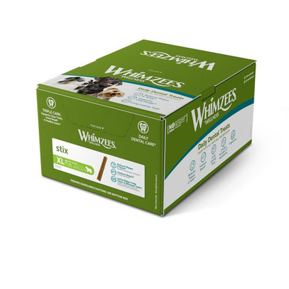 Whimzees Stix X-Large chews deliver powerful dental care for the biggest dogs. At 240mm long, these natural, plant-based treats are designed to reduce plaque and tartar while providing a tough, satisfying chew for dogs who need extra dental support.